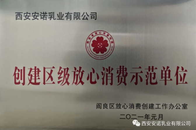 西安安諾乳業(yè)有限公司被評定為“區(qū)級放心消費(fèi)示范單位”