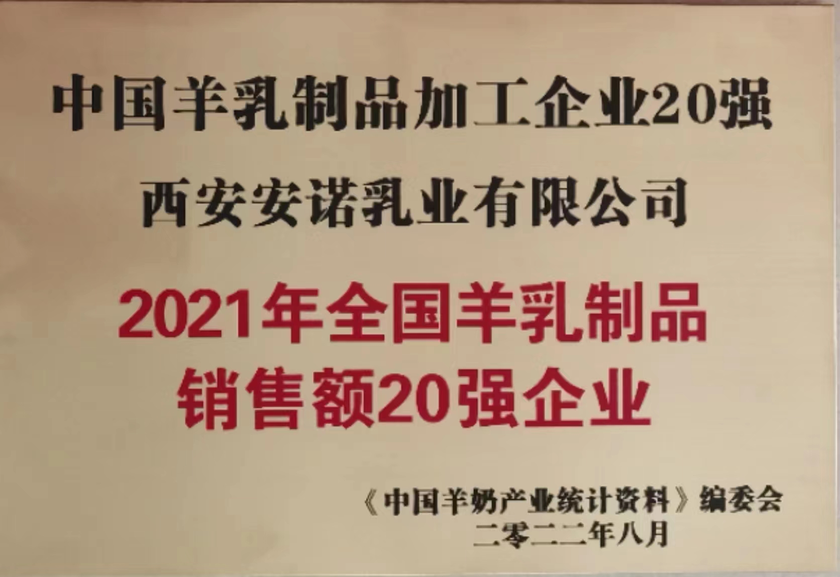 喜訊!安諾乳業(yè)榮獲“2021年全國羊乳制品加工企業(yè)20強(qiáng)”